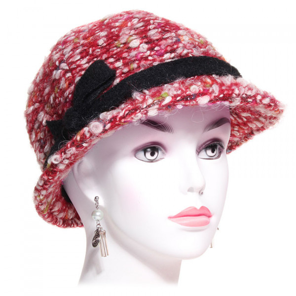 Le Chapeau Lucia est constitué de fils de laine bouclée multicolore, il est rouge orné d'une petite ceinture en laine noir et d'un petit flot, ce chapeau s'ajustera parfaitement à votre tête. C'est une excellente proposition pour les femmes qui aiment l'élégance.